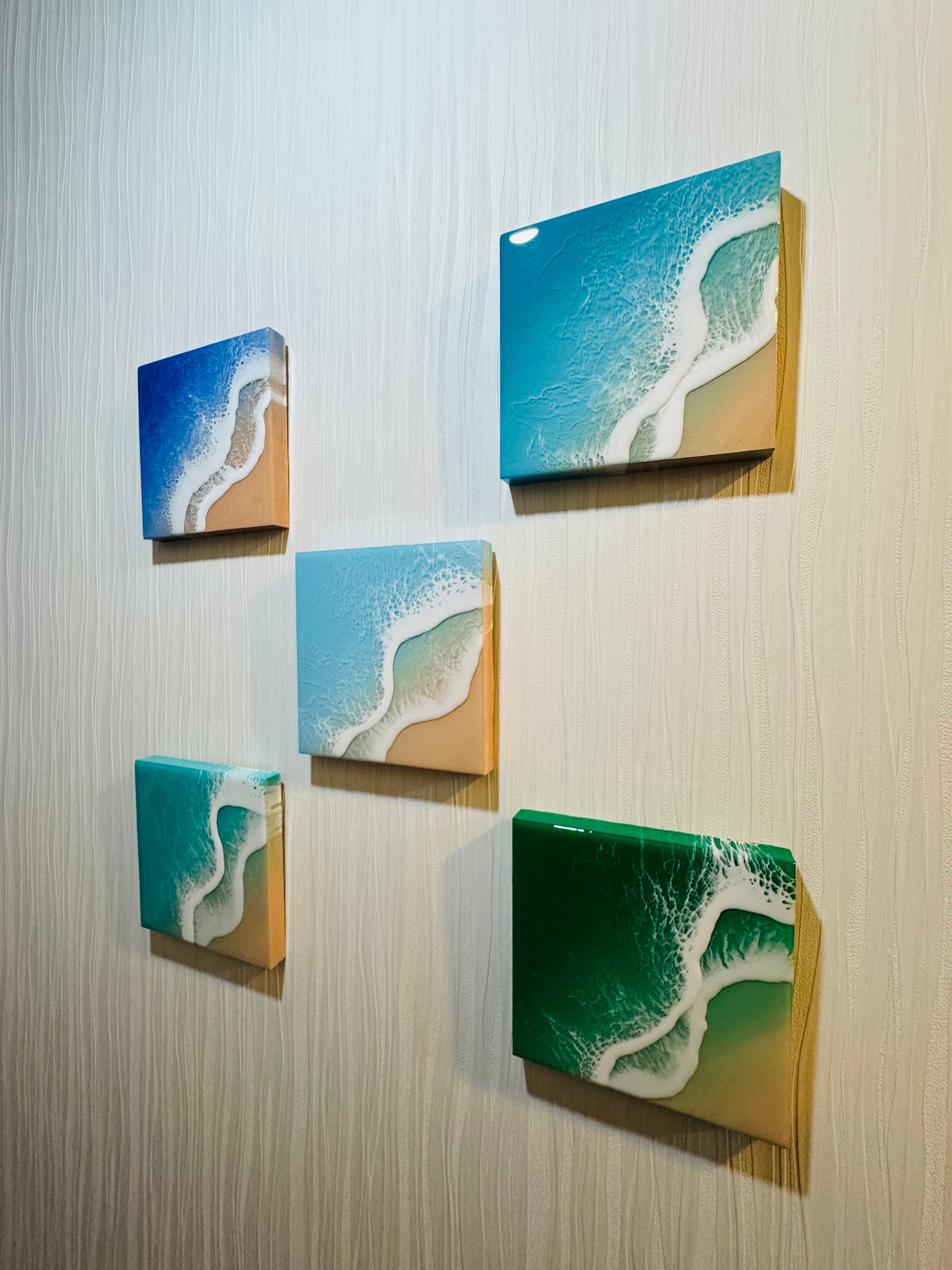 レジン エポキシレジン エポキシ樹脂 レジンアート 壁掛けアート パネルアート オーシャンレジンアート オーシャンアート サーフアート 海アート 波アート 沖縄の海 ライトブルー ライトグリーン ミディアムブルー ディープブルー rejinart oceanrejinart rejin