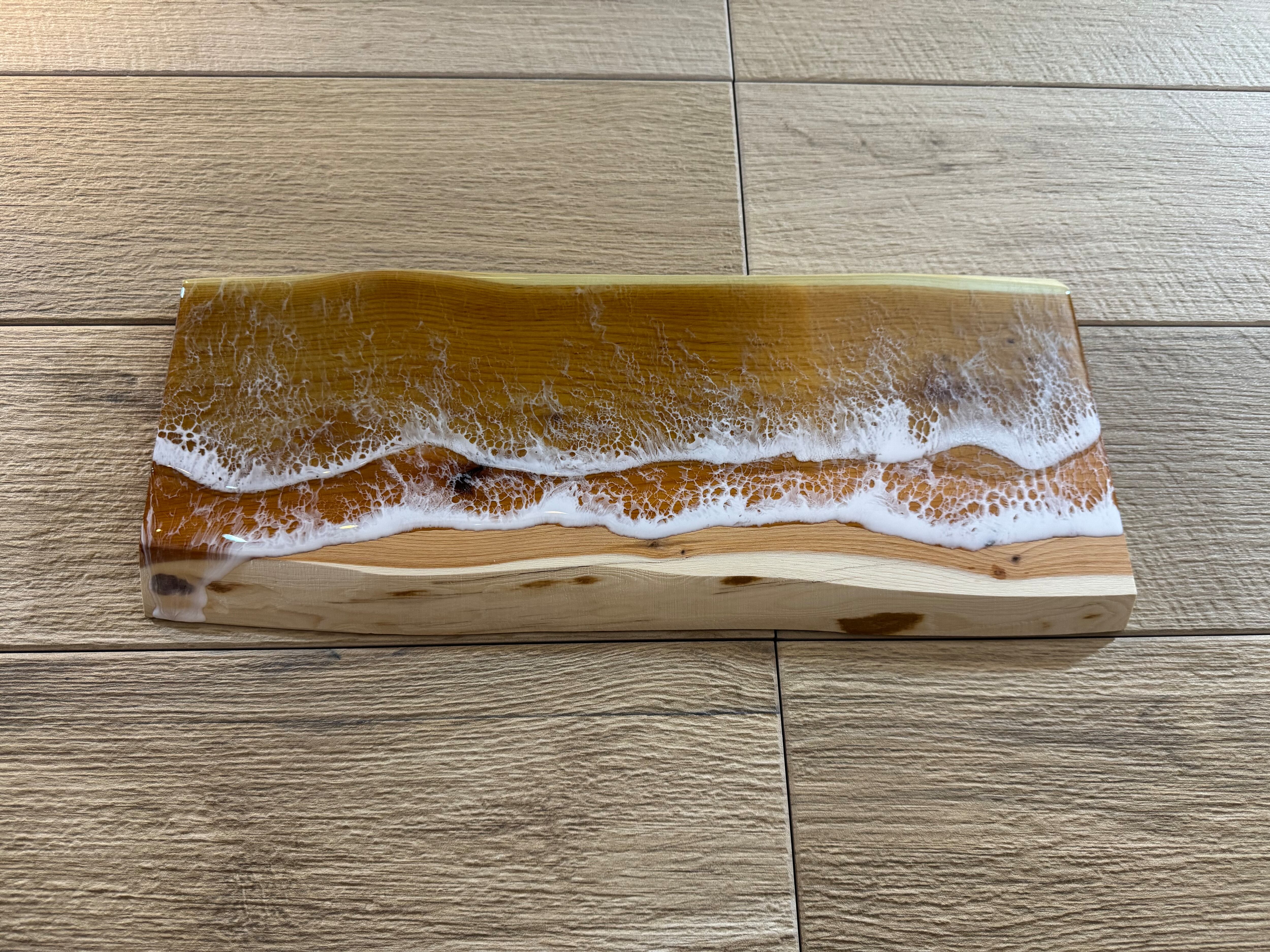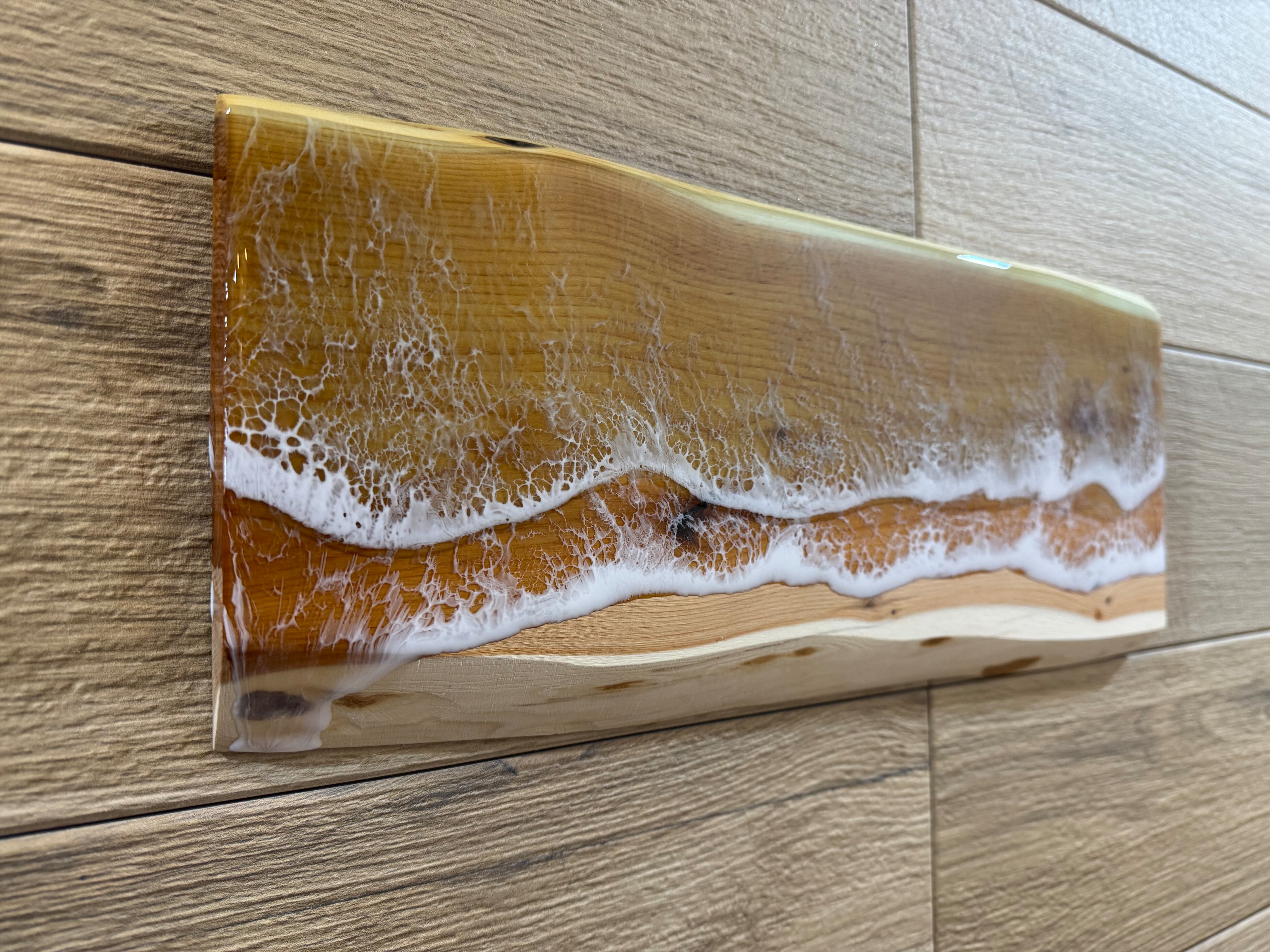 天然木にクリアのレジンを使ったオーシャンアートになります。木目を活かした作品に仕上げております。