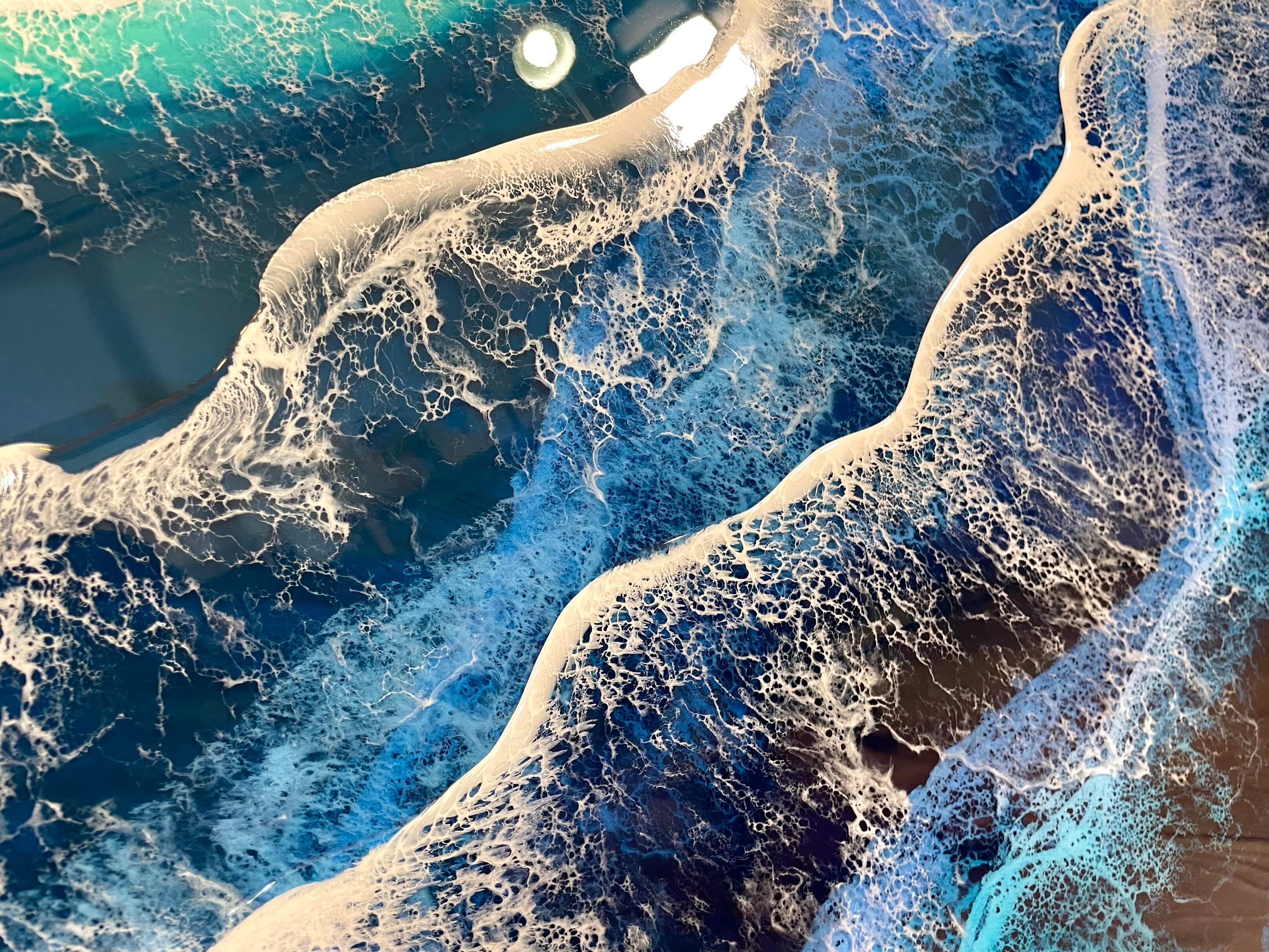 海外の海をイメージした荒々しい迫力ある海を再現したオーシャンエポキシレジンアートになります。